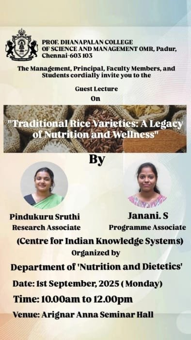 Guest Lecture on Traditional Rice Varieties at Prof. Dhanapalan College of Science and Management: